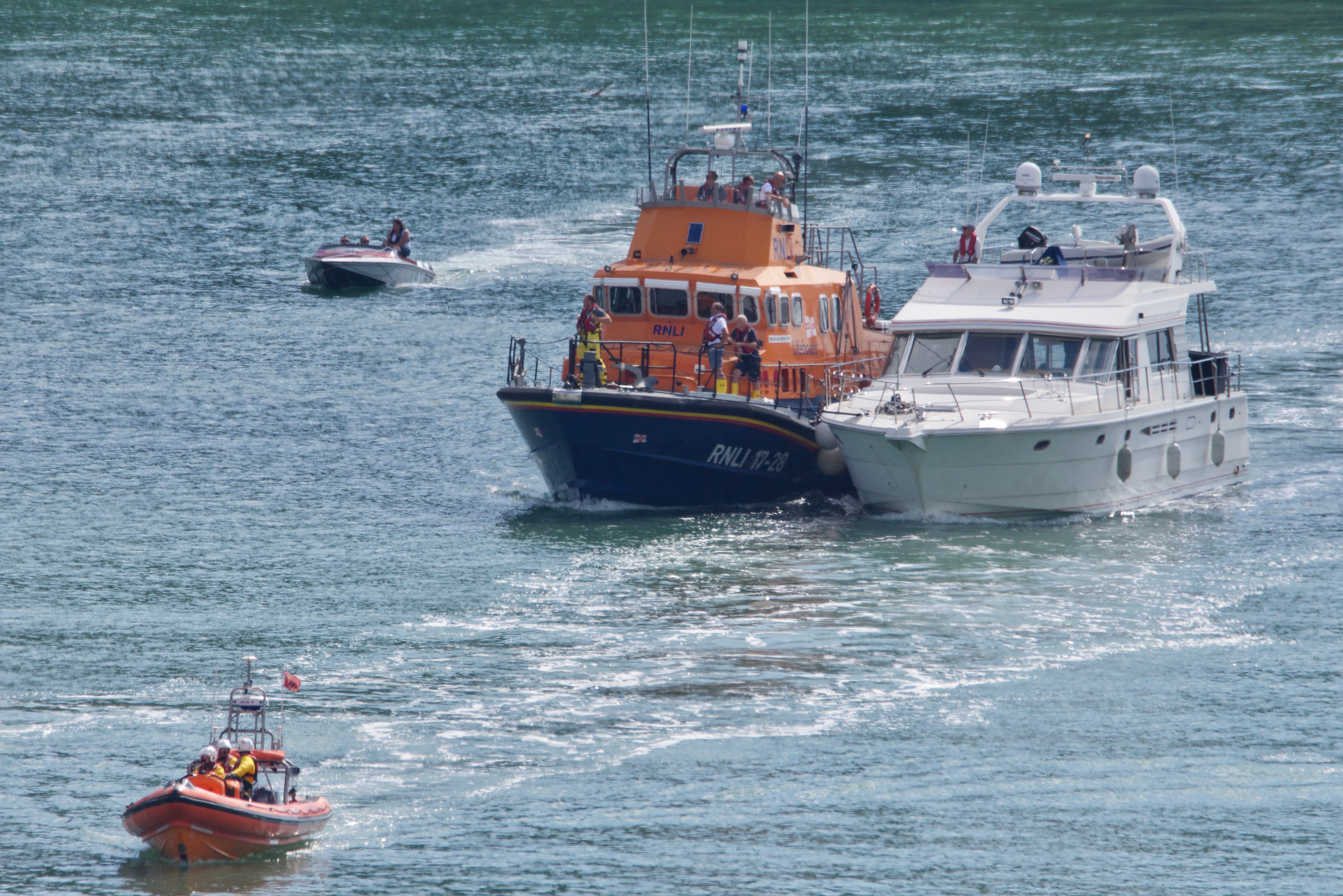 Dart RNLI Atlantic class boat attended a distress call from motor vessel Kristina which was reported to have a fire on board. Joined by Torbay’s lifeboat, the stricken craft was towed into Dartmouth.